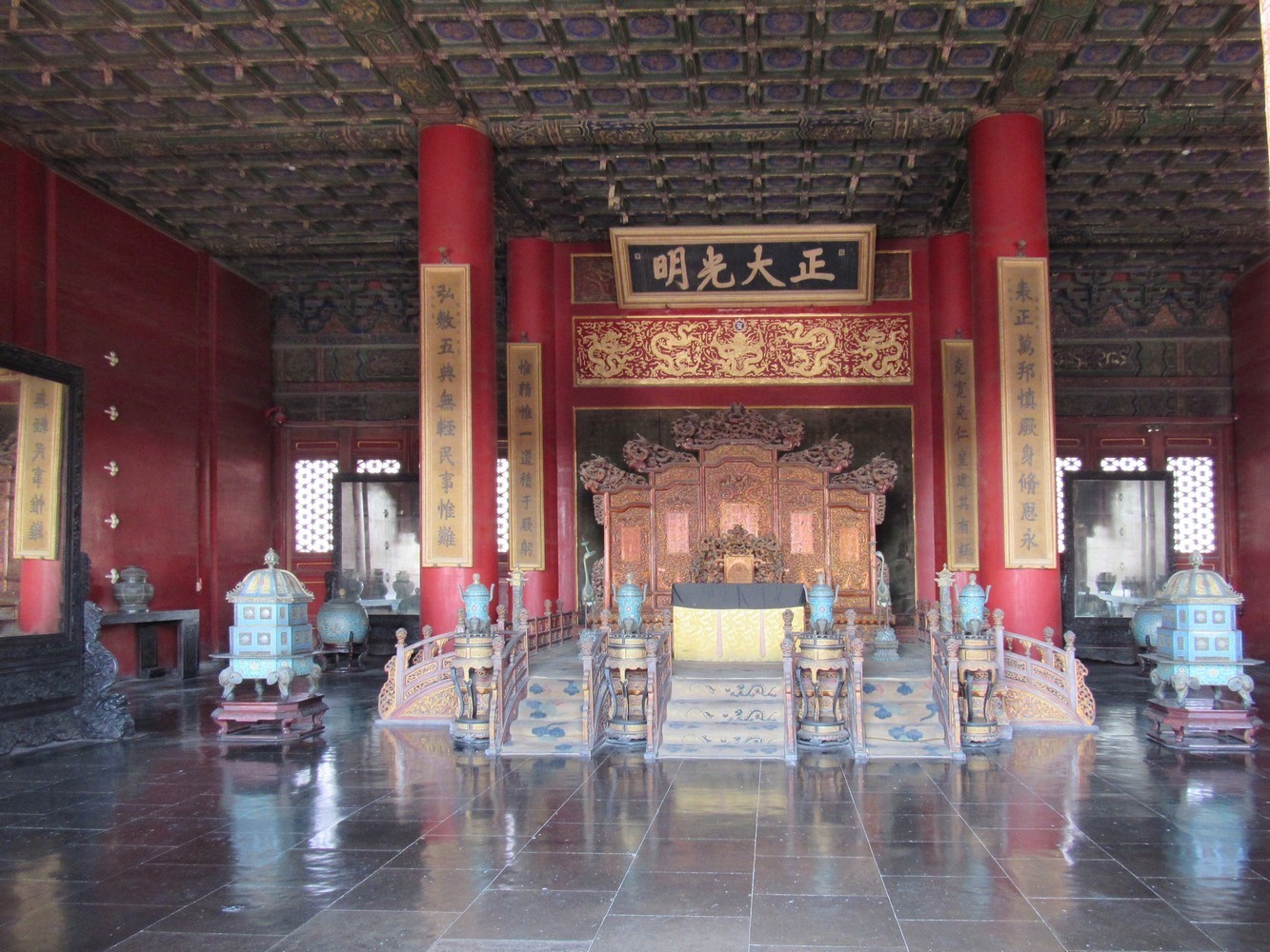 Then, continue your tour of the town by visiting the Forbidden City. From the Tiananmen Square, there’s an underpass, take it and you’ll be entering the Imperial City. From this point, you can’t go wrong, just follow all the other people. Pass security, keep going and you’ll arrive in a courtyard. Over there, you’ll be able to purchase the entrance tickets (¥40/person). The ticket booths are located right after the restaurant and the picnic tables. You’ll find them easily, they have the mention « tickets for the museum ». Once you have your ticket, you’ll be able to continue exploring the fortress! Just go straight, and you’ll pass various rooms of the emperor’s palace. The visit ends when you’ll arrive into the park.