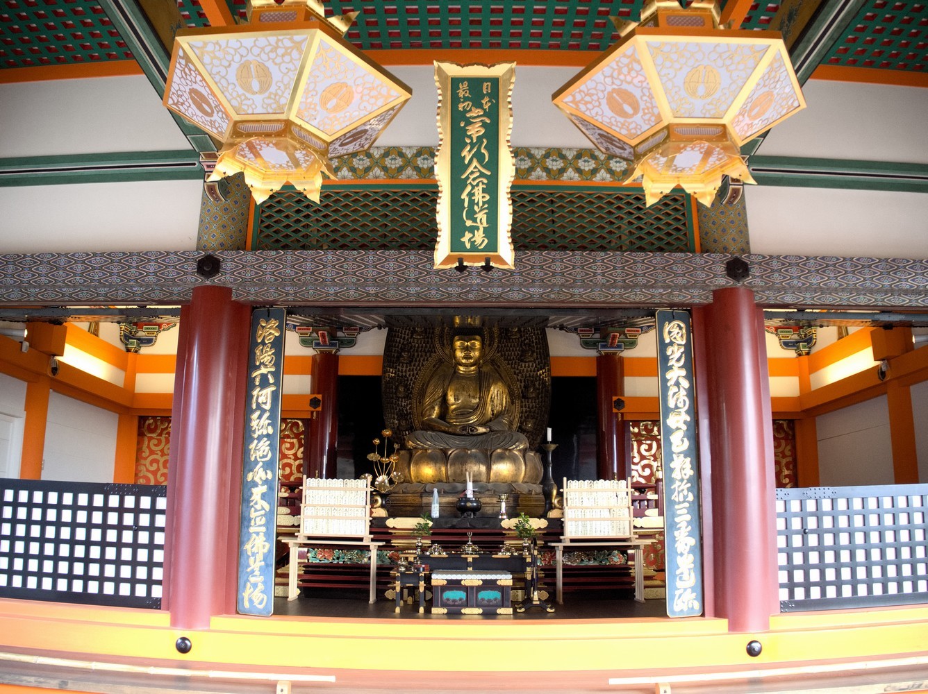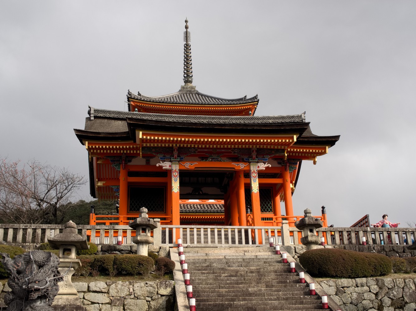 When getting out of the bus, you have to take a small street that goes up. It should be indicated and a 10-minute walk separate the bus stop from the temple. Moreover, in this street that leads to the temple, you will come across many small shops, where you’ll be able to taste the famous rice paste cakes. Once arriving at the end of the street, you’ll see some sort of small bright red temples, and after climbing all the steps, at the end of the path, on the side, you can go to buy entrance tickets (¥400) in order to go to visit the temple. In the main hall of the temple, there is a large veranda where you can have a panoramic view of the city.