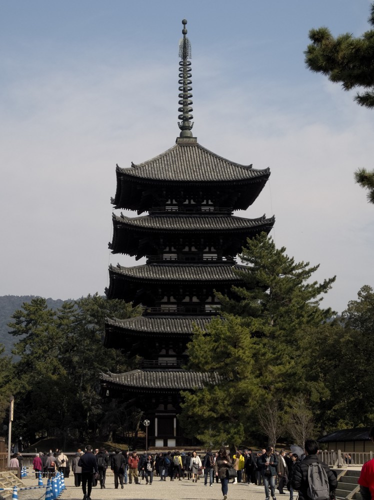 When going out of the station, make a stop at the tourist office in order to get a map of the park and ask for the must-see sites. Then you’ll have to walk along a pretty nice street that leads to the park. It takes about 15 minutes. Almost at the end of that road, on the left you’ll see a large staircase that leads to Kofuku-ji temple. Over there you could see a pretty 5-storied pagoda and also some deer.