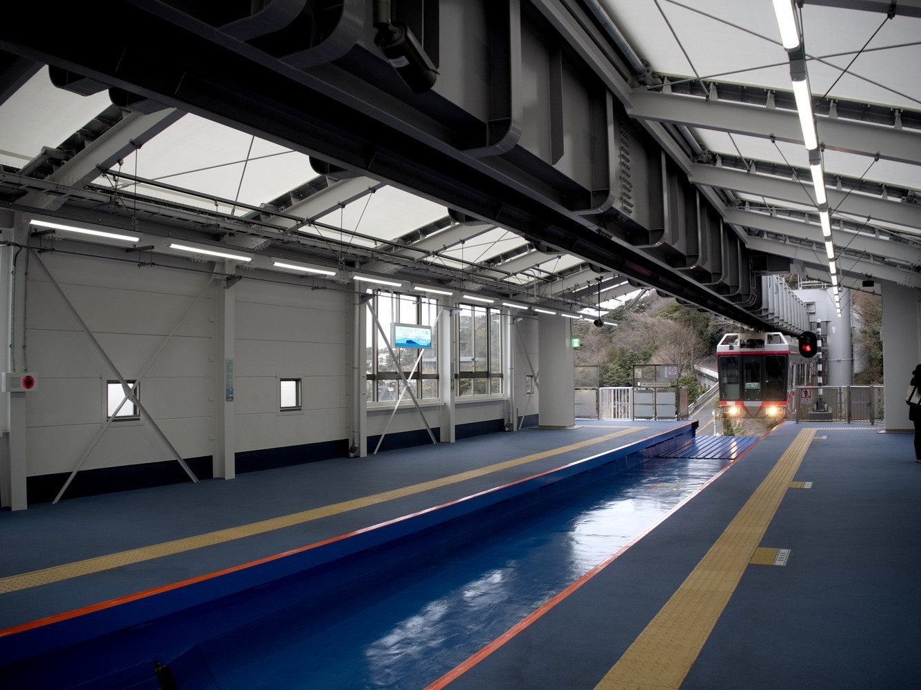To get back to Kamakura, I recommend taking the Shonan Monorail instead of taking the Enoden Line. The monorail will bring you back to Ofuna Station on the JR Yokosuka Line and that line will bring you back to Tokyo. The monorail is much more interesting and breathtaking than the Enoden Line because you’ll feel like you are flying over the city. Moreover it’s not much more expensive: ¥320 instead of ¥260. The monorail station is pretty easy to find. When arriving at Enoshima Station of the Enoden Line, go straight ahead and pass the level crossing. In front of you there will be a crossroads and you’ll see the station which is located inside a building.