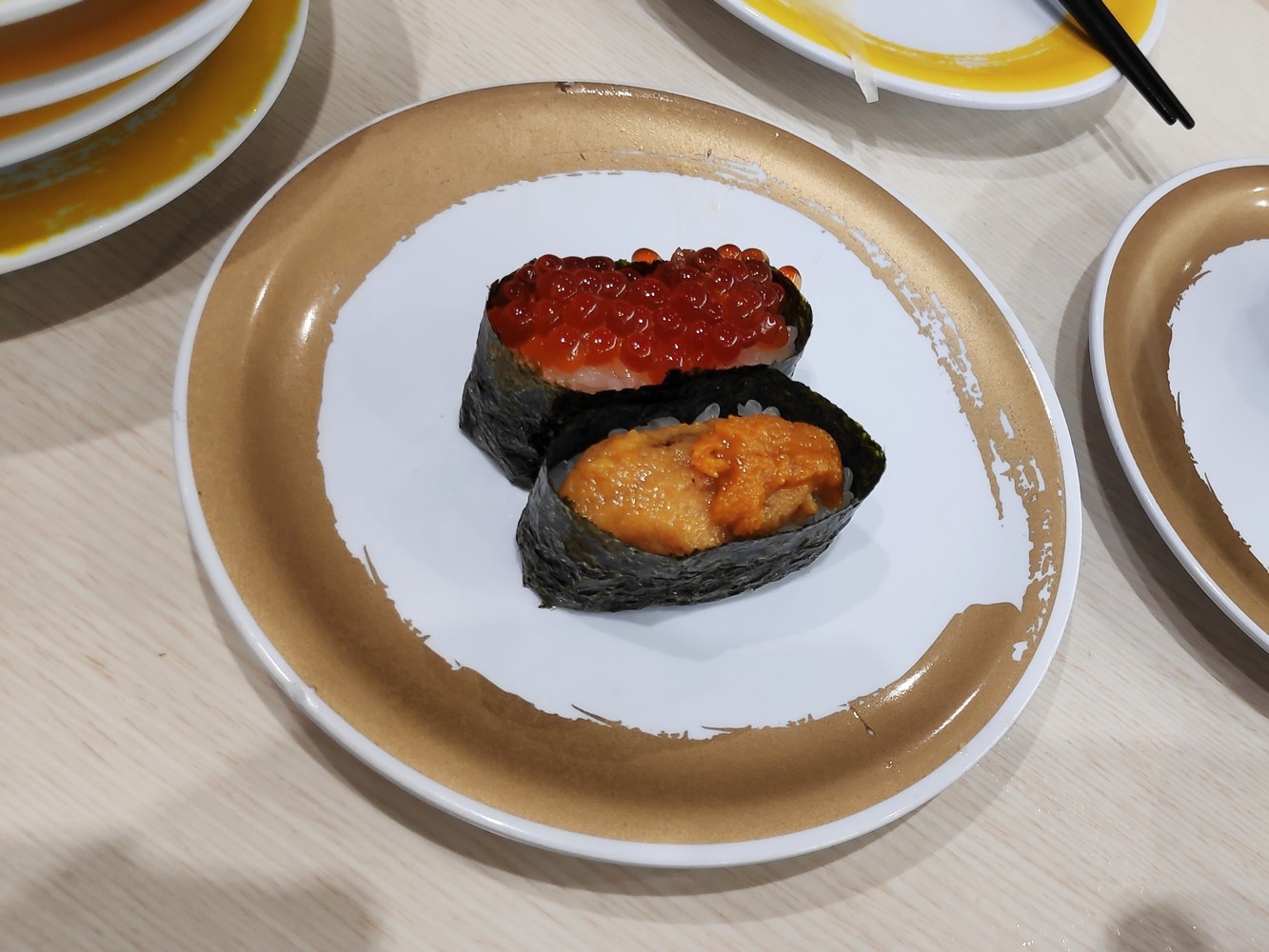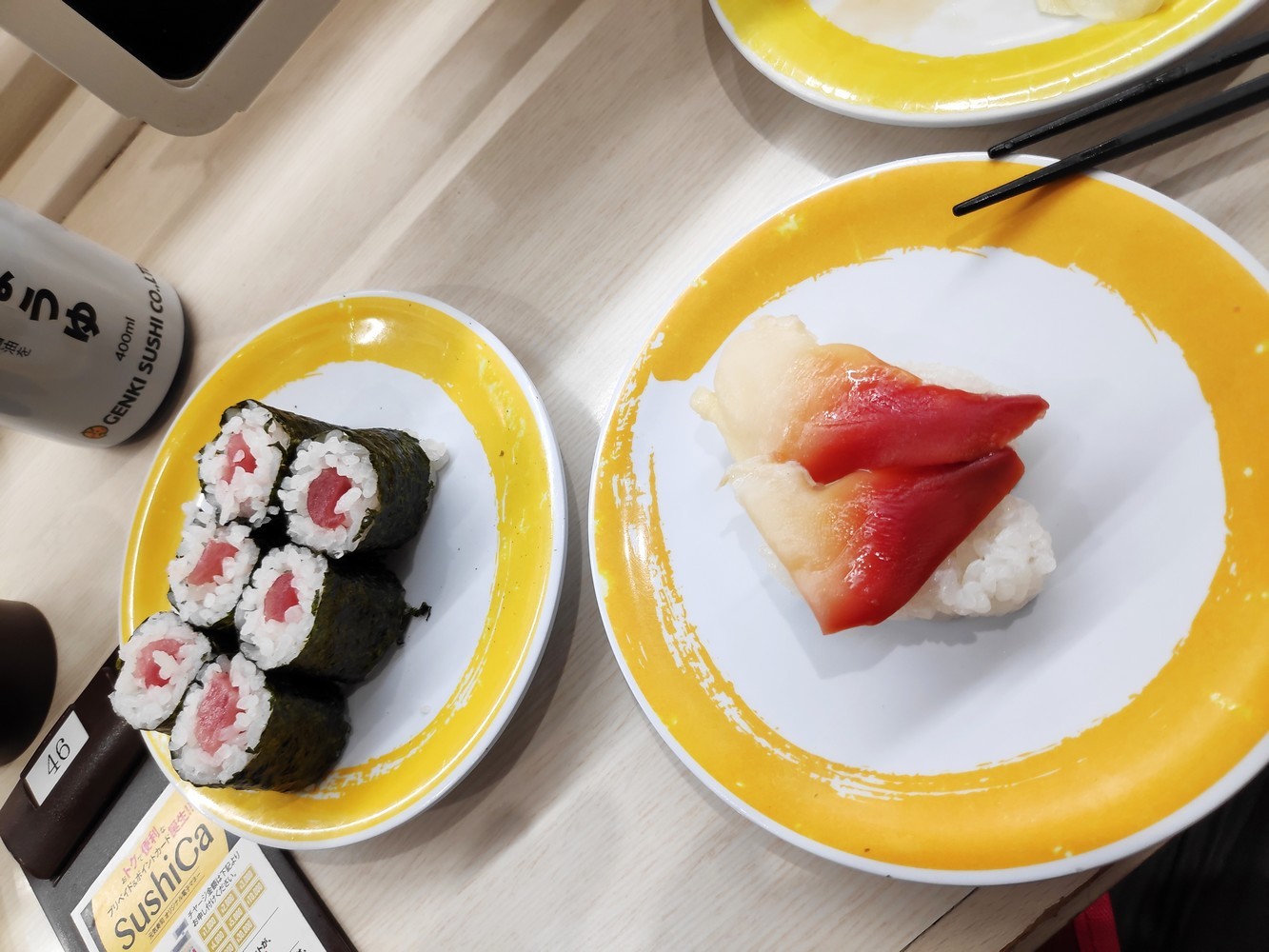 I recommend trying the Genki Sushi Restaurant. The concept is that each table has a tablet which is used to order food. When you’ve made your choice, your small plates of sushi will come to you via a system of trays placed on rails. Payment is by the plate, but it’s not very expensive. However, there are different kinds of sushi, some are more expensive than others (the plates are different colours).