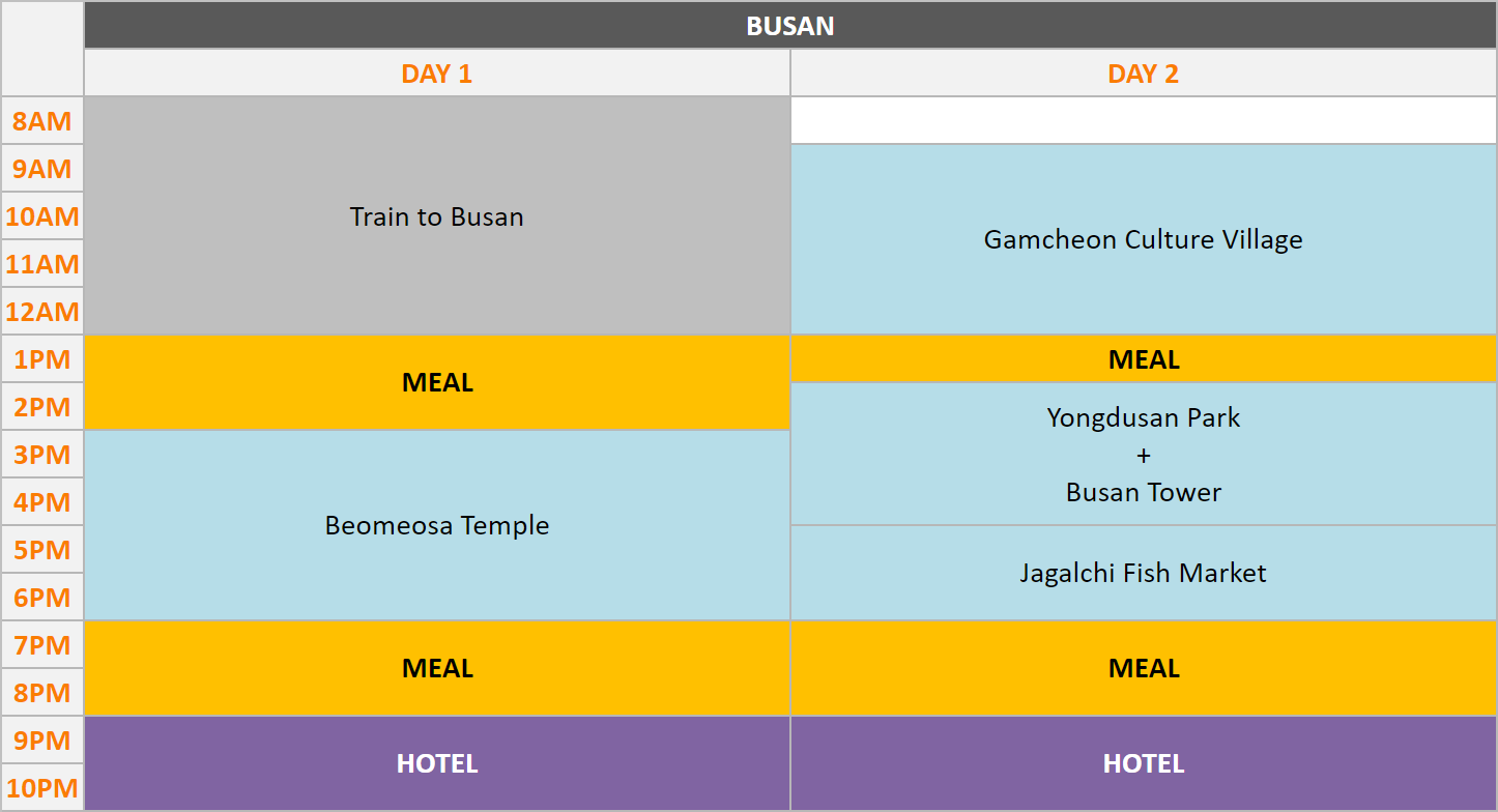 ITINERARY - SOUTH KOREA: here is the full itinerary for a tour of South Korea.