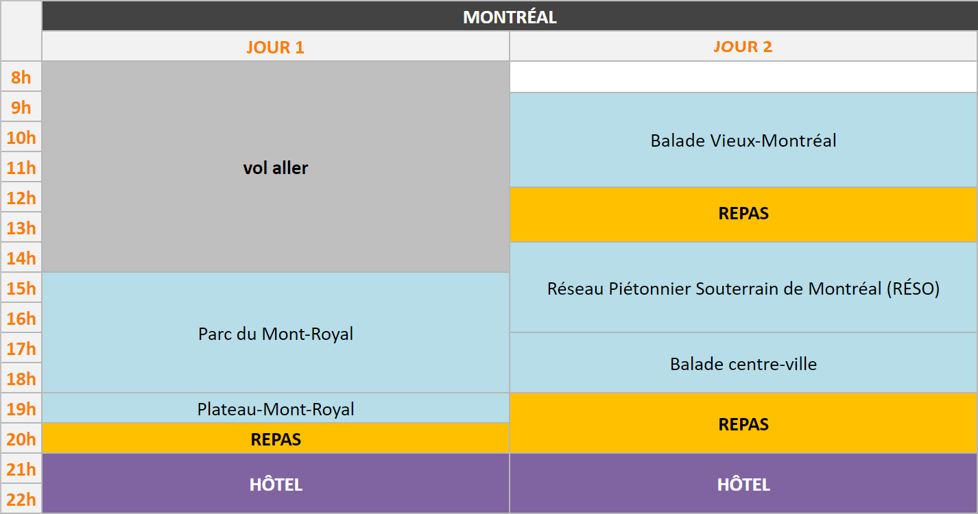 Je vous suggère de réserver une chambre d’hôtel située dans le centre-ville, car Montréal est une ville qui se visite essentiellement à pied. De cette façon, ça vous permettra de laisser votre voiture à l’hôtel, et de ne pas avoir à payer le parking.
