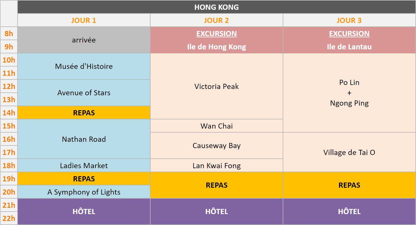 Visiter Hong Kong est très facile, grâce au réseau de transports en commun très bien développé, qui relie la péninsule ainsi que les 2 principales îles entre elles. Globalement, je vous recommande de consacrer une journée par île et une journée pour la péninsule. C’est pourquoi, 3 jours est le minimum de temps dont vous aurez besoin. Rester plus longtemps vous permettra de faire du shopping ou encore d’aller vous amuser dans les différents parcs d’attractions présents (Disneyland et Ocean Park).