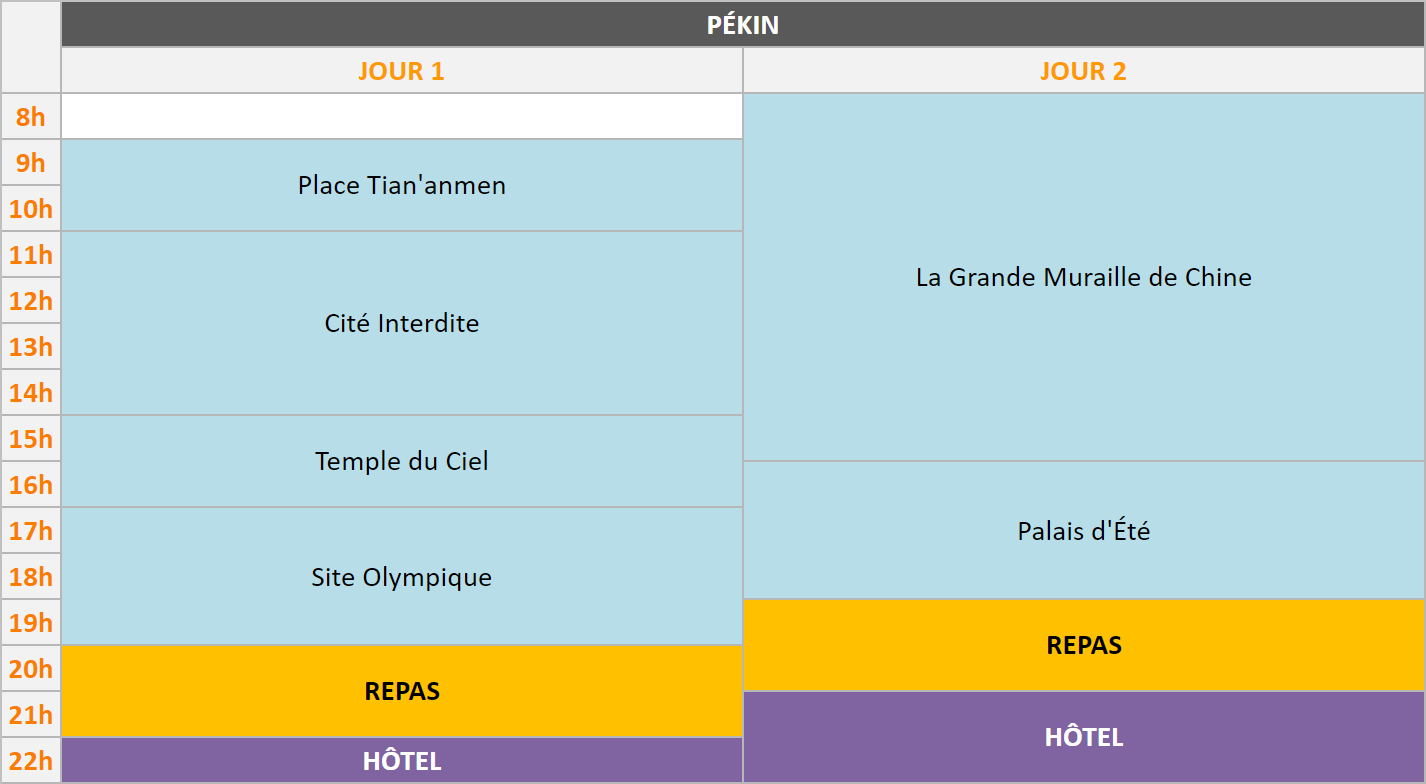 Voici le planning que j’ai suivi lors de mon escale à Pékin. En 48h, vous aurez le temps de voir les essentiels de la ville :