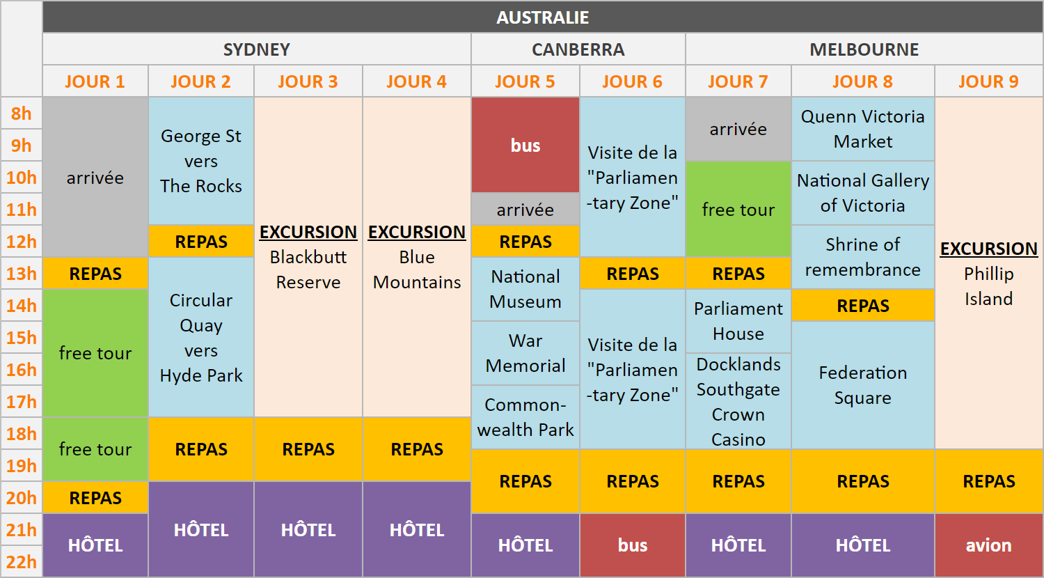 Avant de se poser la question de la planification du voyage, il est important de réfléchir à la période à laquelle partir. Pour visiter le sud-est de l’Australie (notamment la zone qui va de Sydney à Melbourne), la période idéale s’étend de décembre à février (voire jusqu’à mars). Mais le mois de février est probablement le meilleur moment, car les vacances scolaires Australiennes sont terminées.