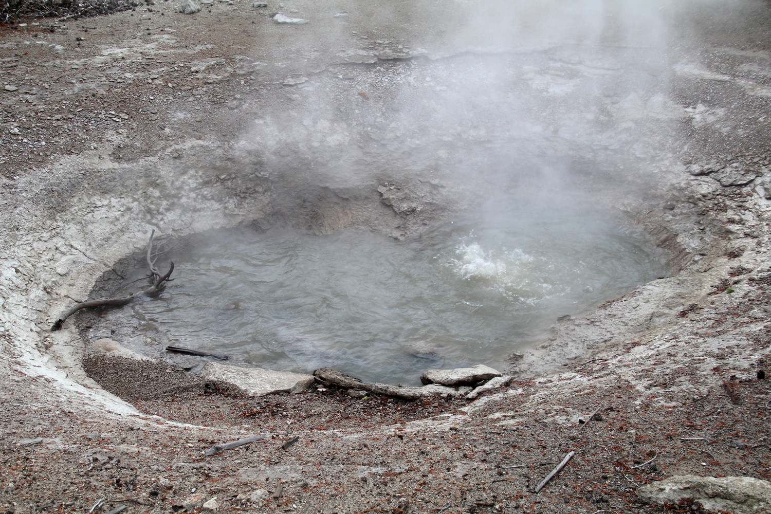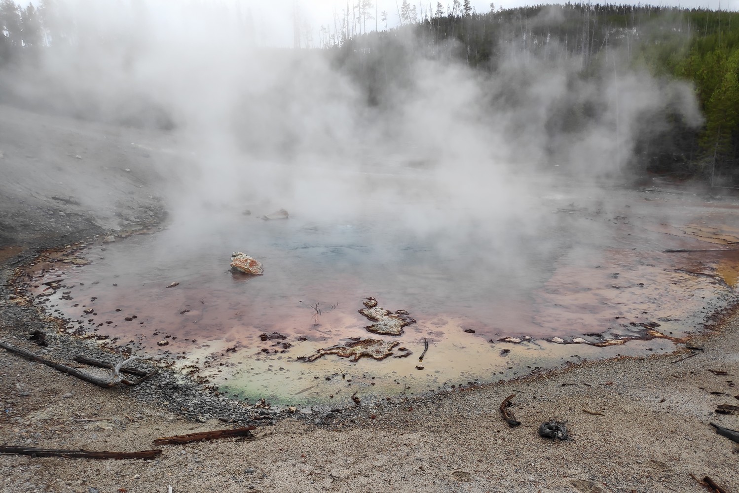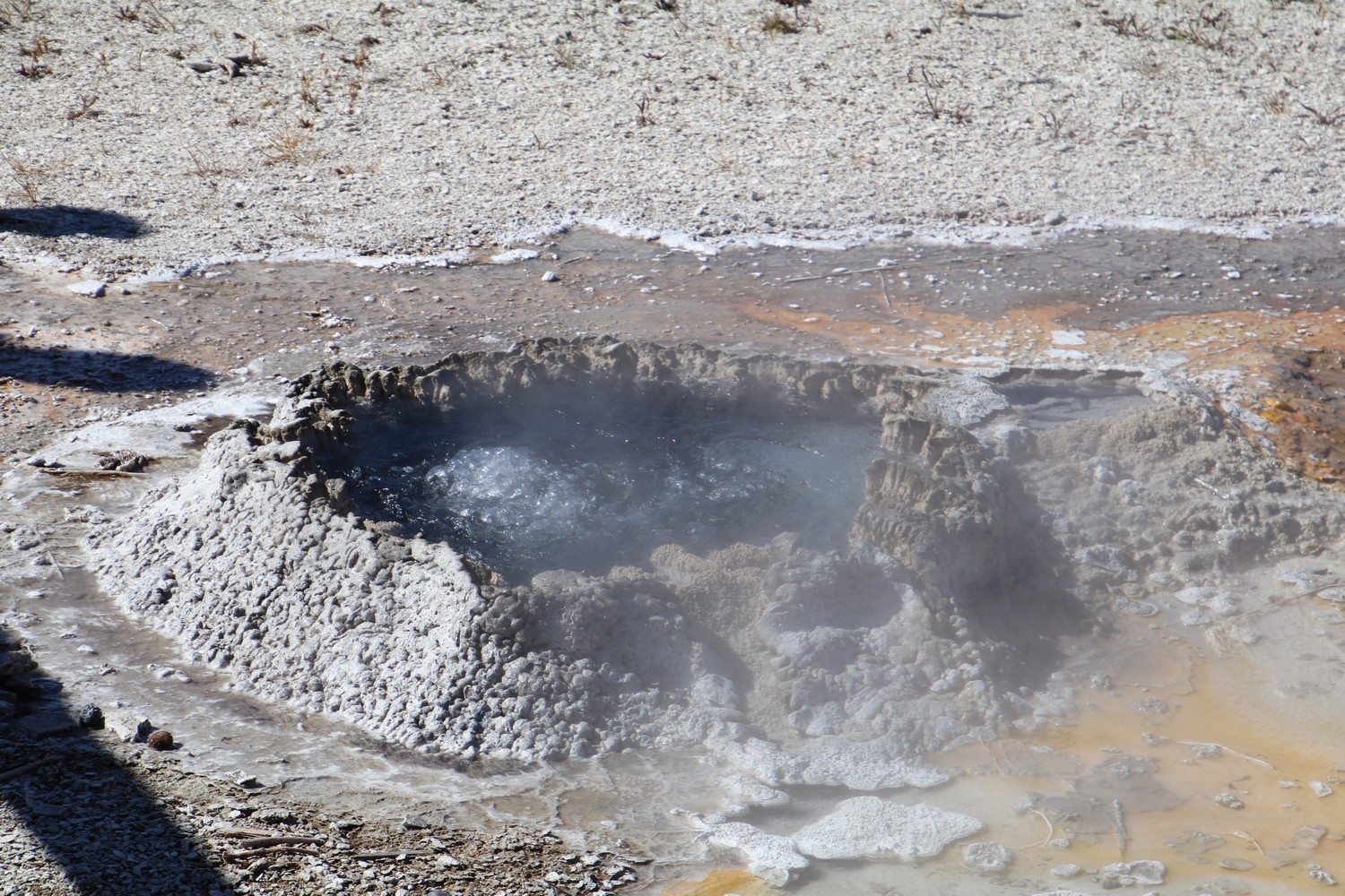 Then, continue driving the Grand Loop Road and stop at Artists Paintpots. This area contains some bubbling mudpots that really make the noise of a cooking pot!