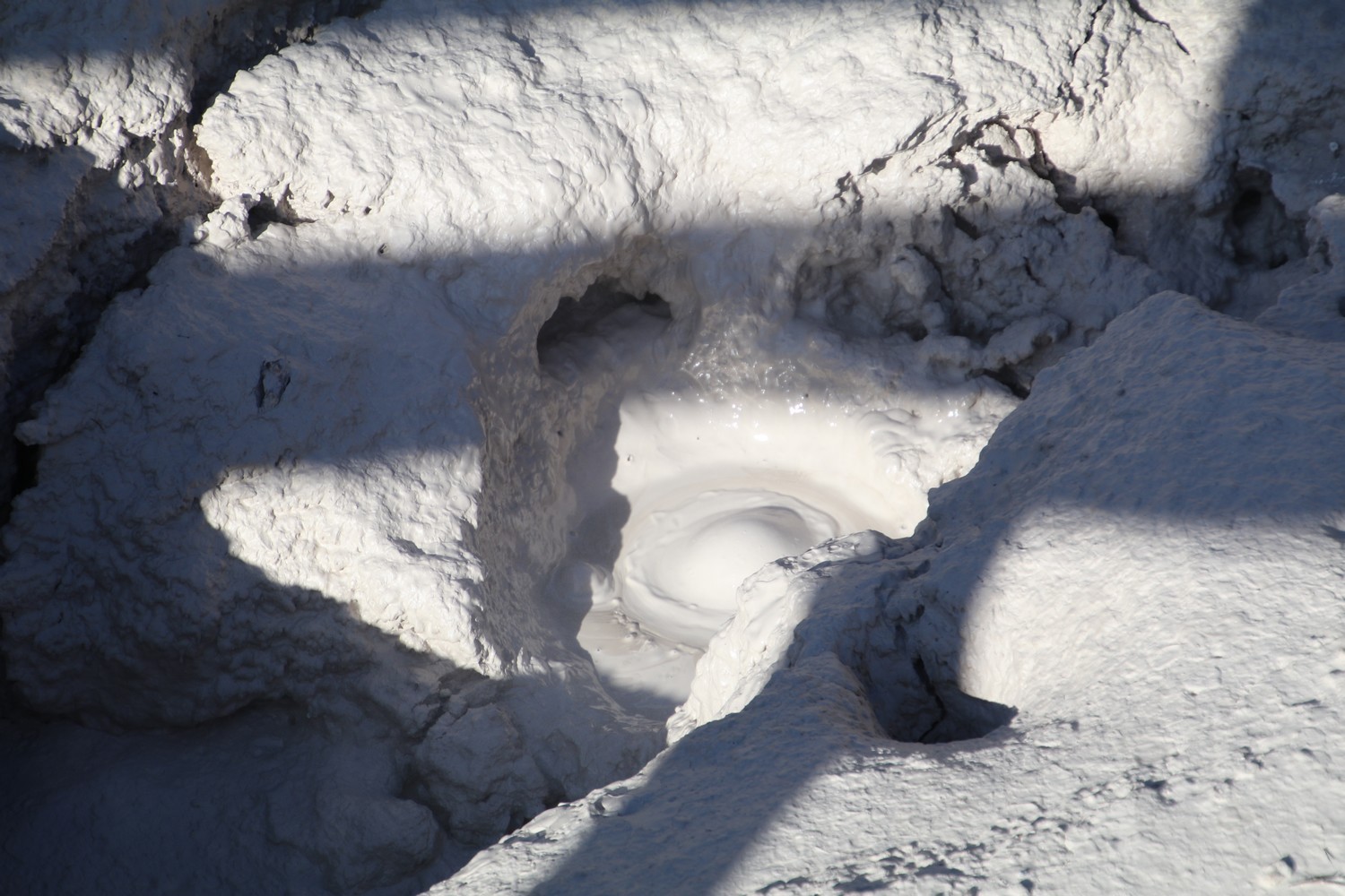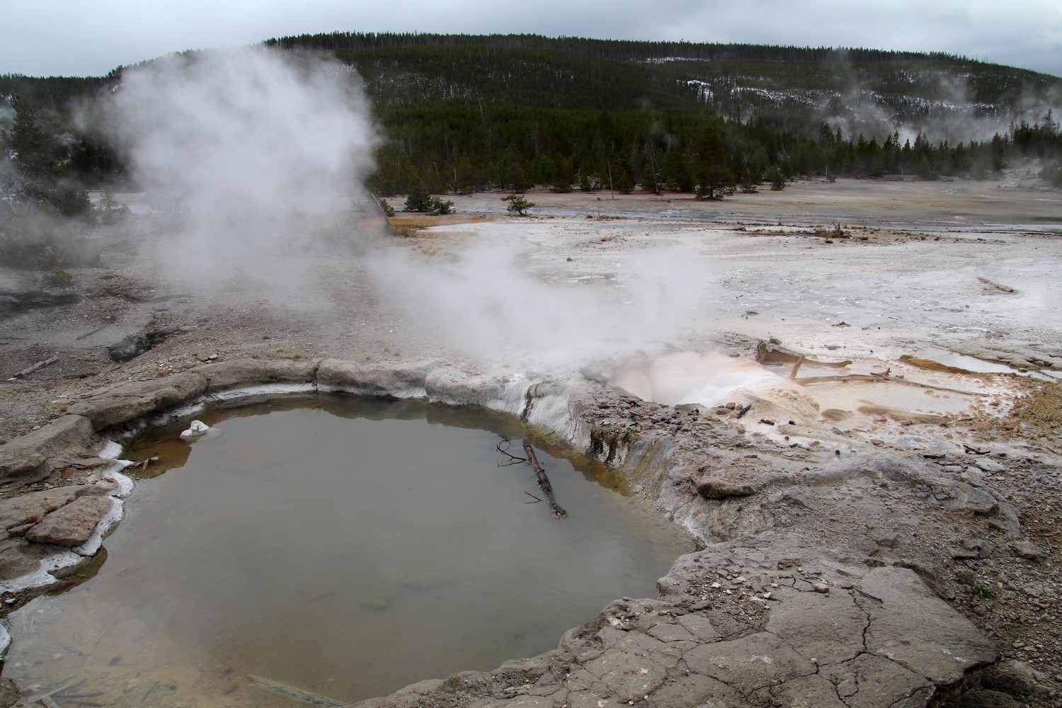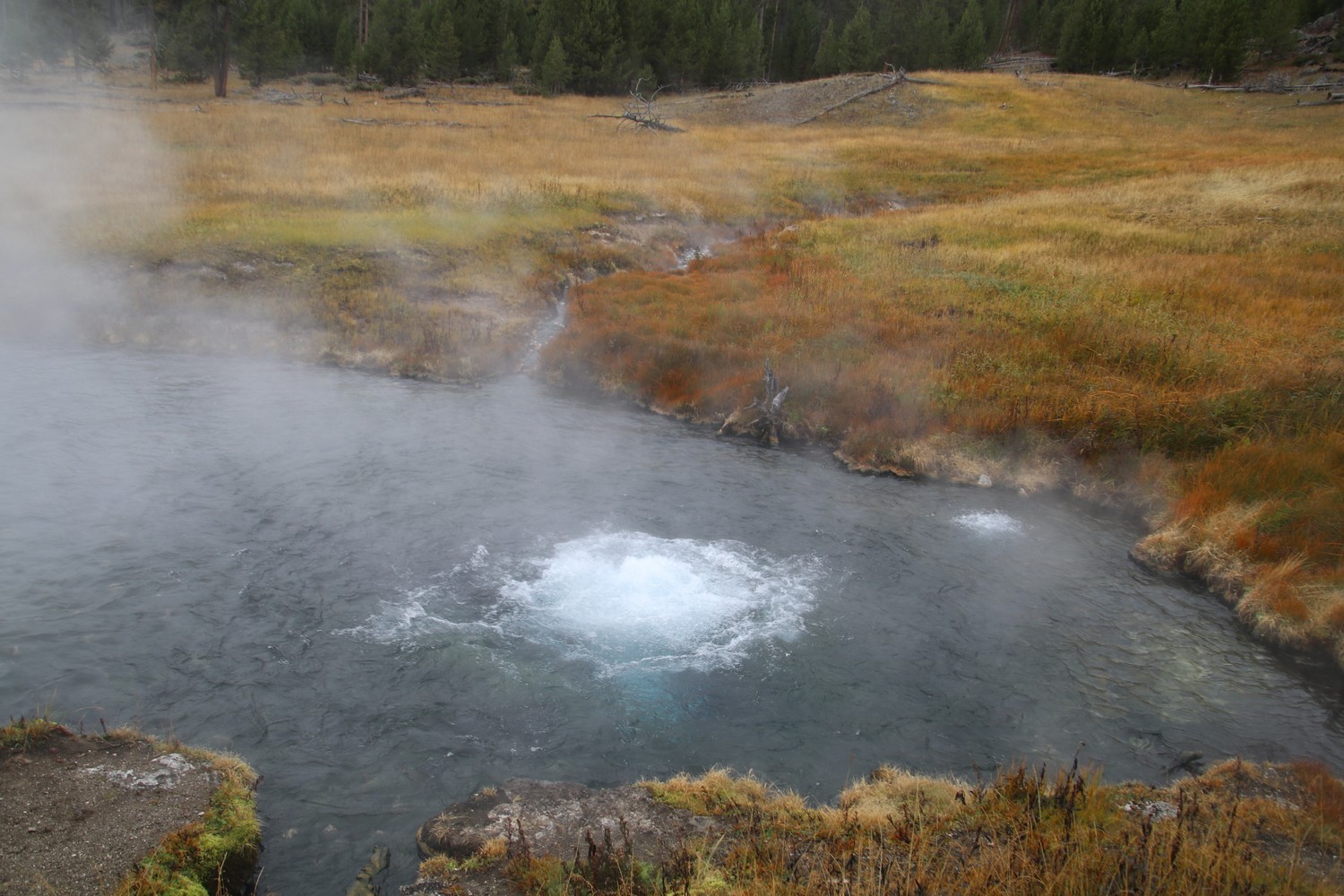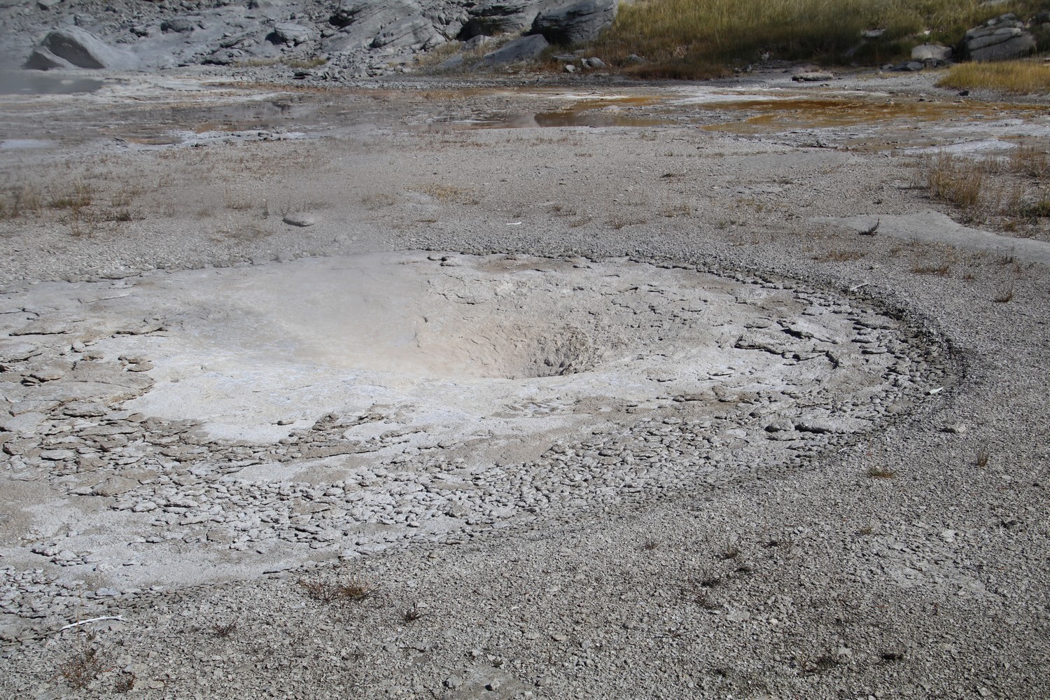 Then, continue driving the Grand Loop Road and stop at Artists Paintpots. This area contains some bubbling mudpots that really make the noise of a cooking pot!