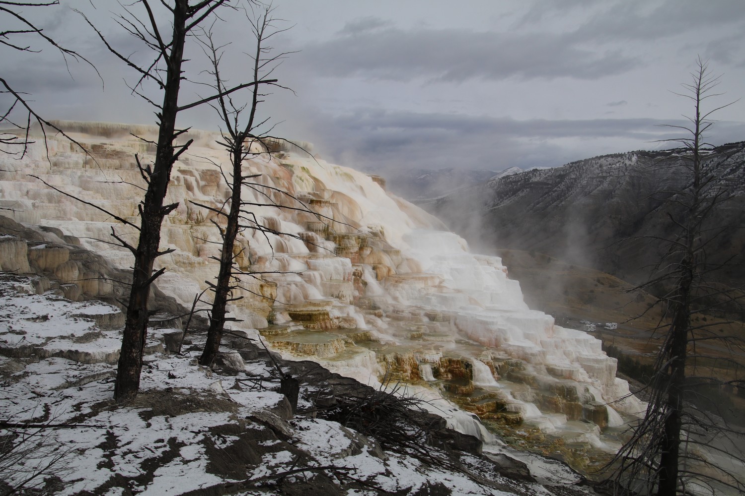 For this third day in Yellowstone, let’s go to Mammoth Hot Springs Terraces. It’ll be quite different compared to what you’ve seen the two previous days. First of all, it’s the hottest part of the park and more than that, instead of geysers and hot springs, over there you’ll see some pretty impressive limestone formations.