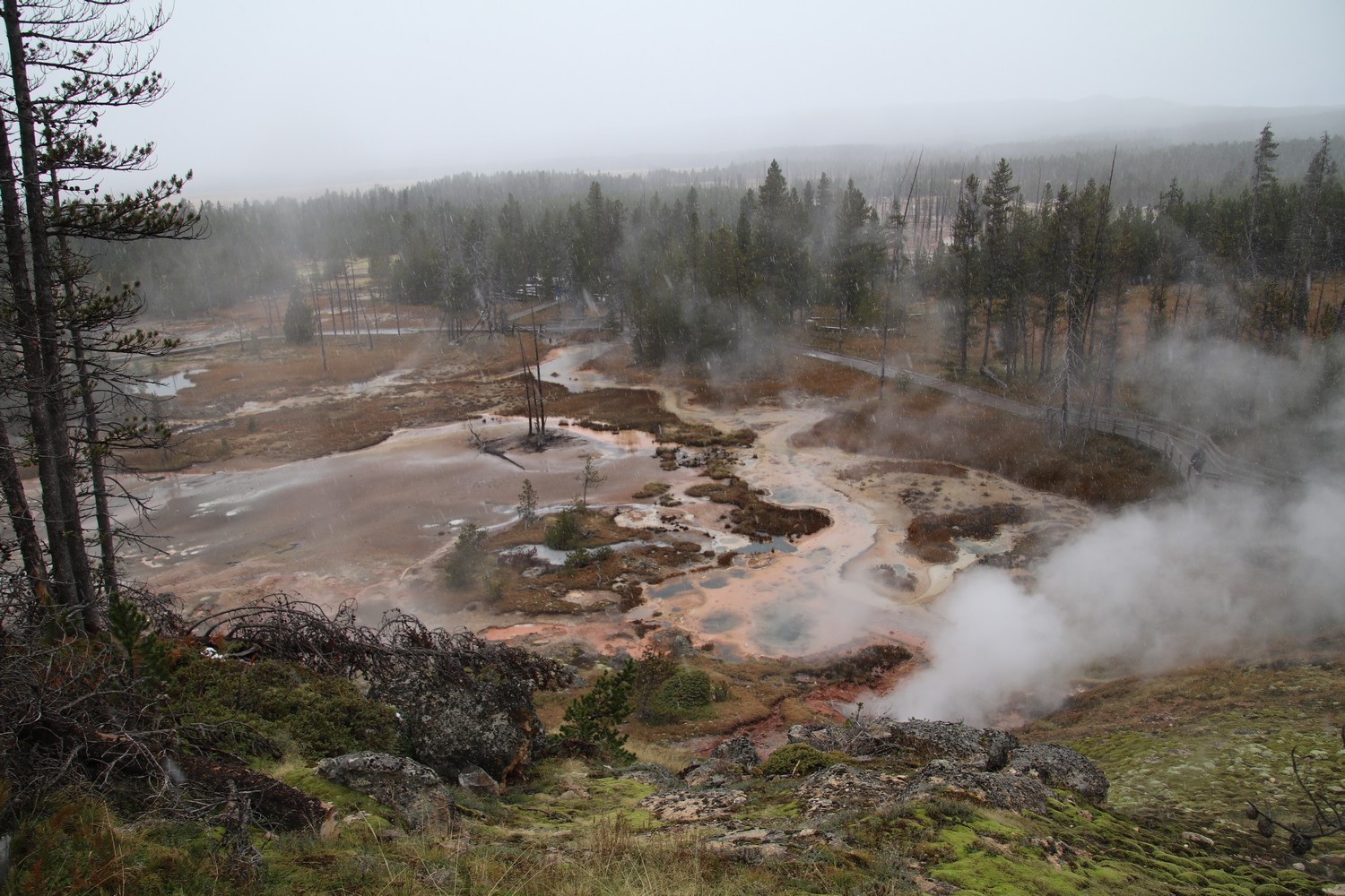 To start this second day in Yellowstone, Midway Geyser Basin is somehow the perfect area, as it contains the very famous Grand Prismatic Spring. The area is located north of Biscuit Basin and is reachable via the Grand Loop Road.