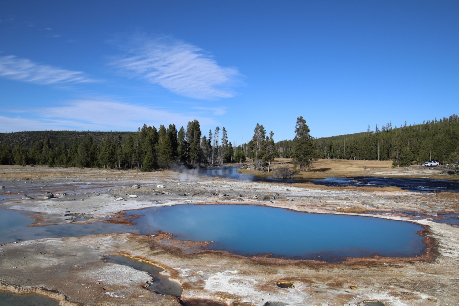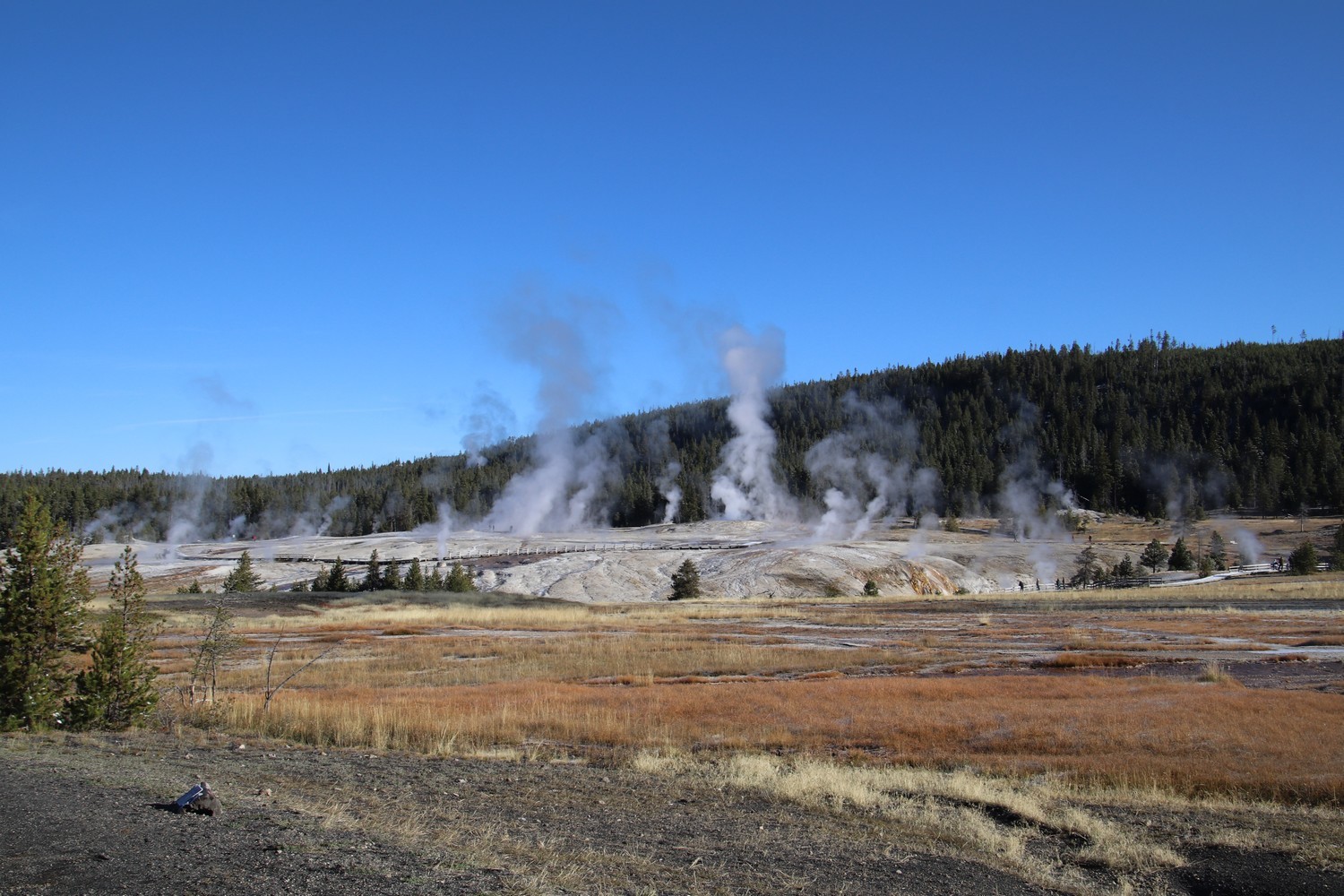 For this first day of exploring Yellowstone, let’s go to the area that has the highest concentration of geothermal features in the park, Upper Geyser Basin. It contains five predictable large geysers, including the famous Old Faithful Geyser. This 1.5 km long area is very easy to explore on foot.