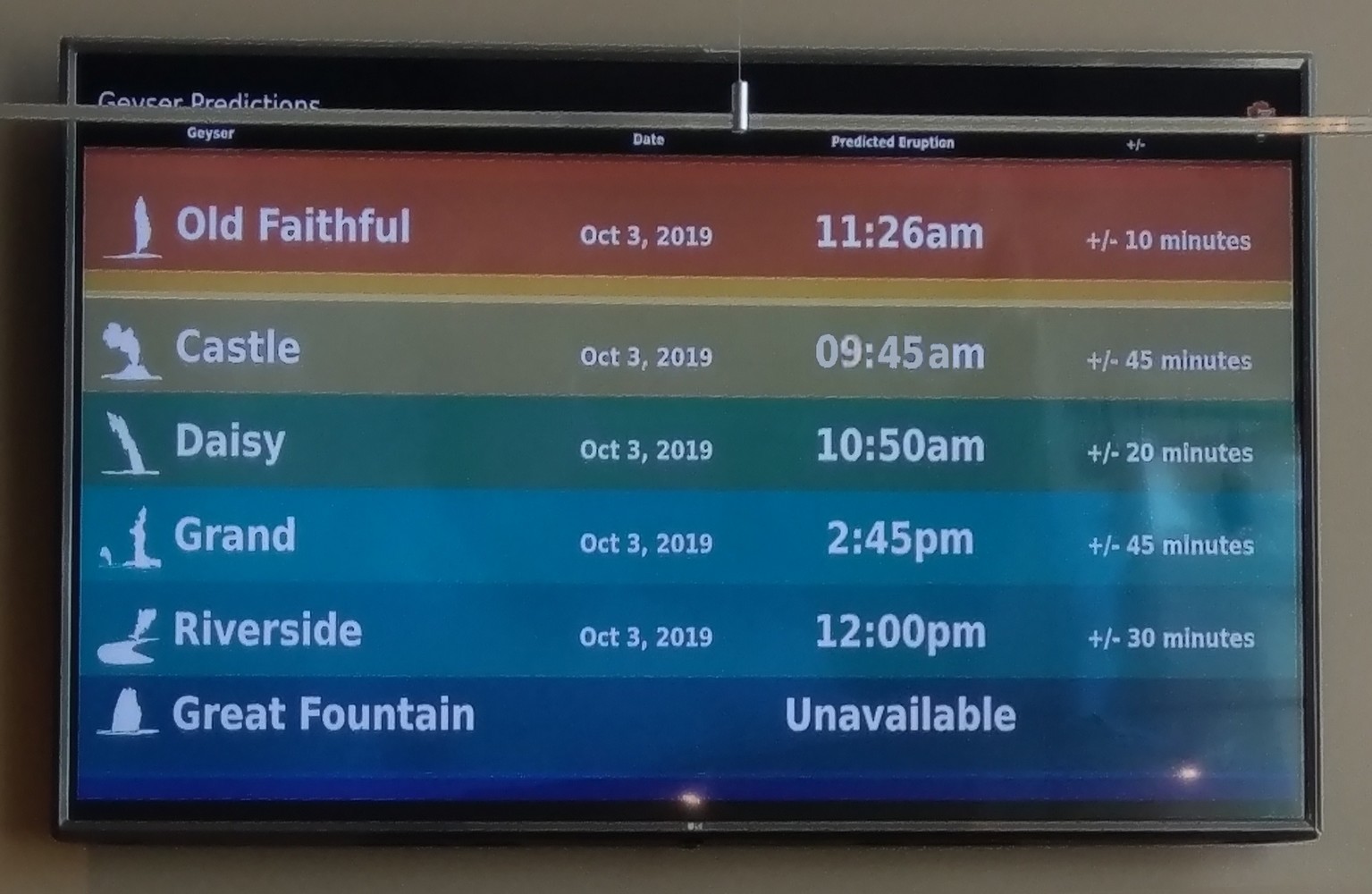 During my trip, the eruption of Grand Geyser occurred really late, at the very end of the predicted time. And everyone was wondering if the eruption was really going to happen!