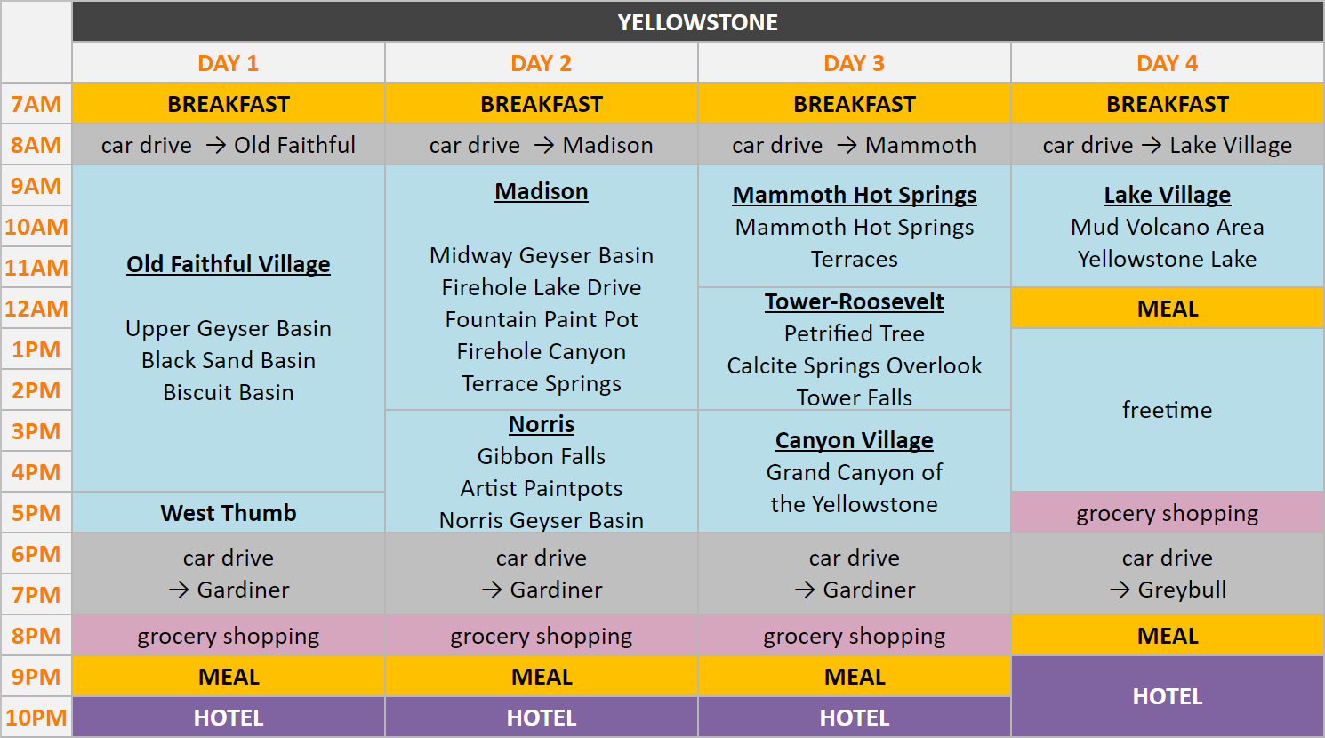 You want to go to explore the legendary Yellowstone National Park and its famous geysers? Follow me to find out how to go around the park in 4 days.