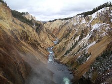 Then head to Tower Falls and just before getting there, still on the Grand Loop Road you’ll see a parking lot on the side. From there a small path will take you to Calcite Springs Overlook where you’ll be able to see the end of the Grand Canyon of the Yellowstone.