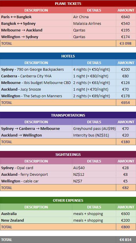 Want to get an idea of the budget for a road trip to Australia and New Zealand? Come on to have a look at the expenses I’ve made during my trip.